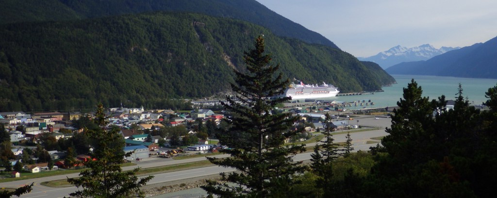 Overlooking the town of Skagway with a cruise ship in port