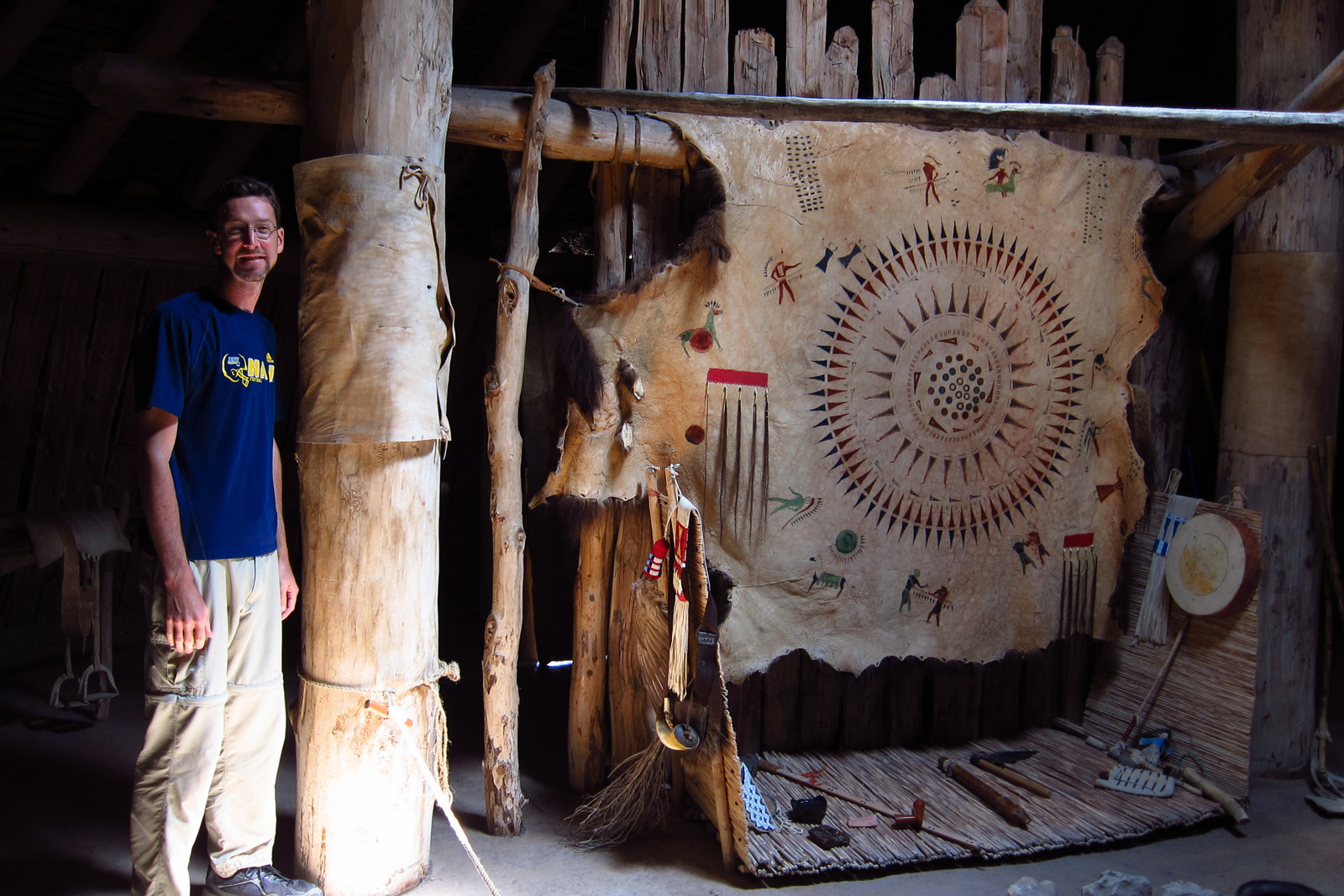 There is not much evidence left of the hundreds of earthlodges that once stood in these three villages, but there is one reconstruction that visitors can enter to exemplify the spacious dwellings. An earthlodge actually required a large amount of wood to provide structure.