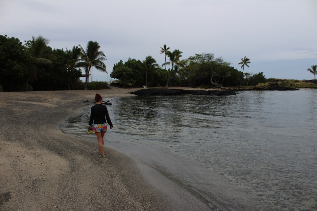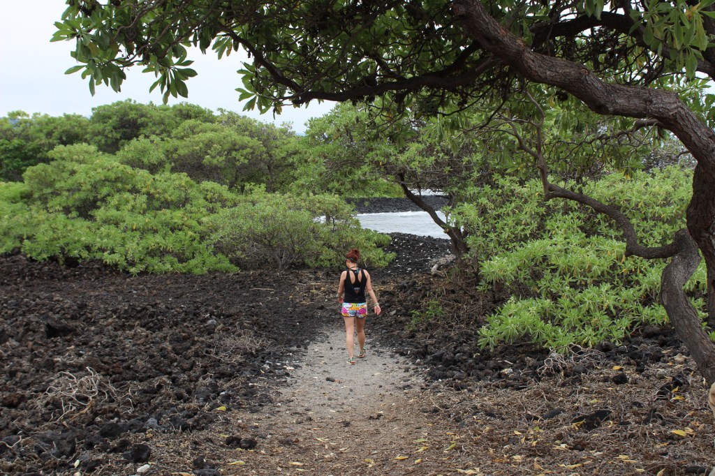Visitors cannot park at the beach, instead they have to walk a half-mile one-way, which keeps the numbers down. Two historic trails go to fishponds in this dry, volcanic landscape.