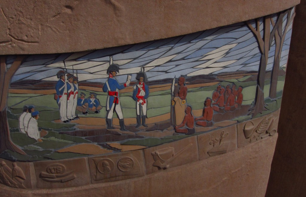 Monument at the Western Historic Trails Center in Council Bluffs, Iowa
