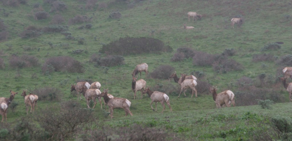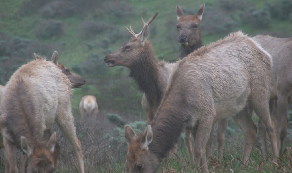 The park has a reintroduced herd of Tule elk near the Historic Pierce Point Ranch on Tomales Point. If you visit in January, you might find a bull was waiting for his other antler to drop.