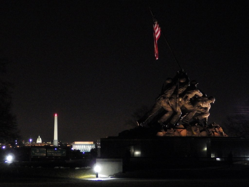 Walk the bridge across the Potomac River to Arlington, Virginia for a view of the U.S. Marine Corps War Memorial that depicts the American flag being raised over Mount Suribachi on Iwo Jima during World War II. This is technically part of George Washington Memorial Parkway (another NPS site), and offers a commanding view of the National Mall and is especially photogenic at night.