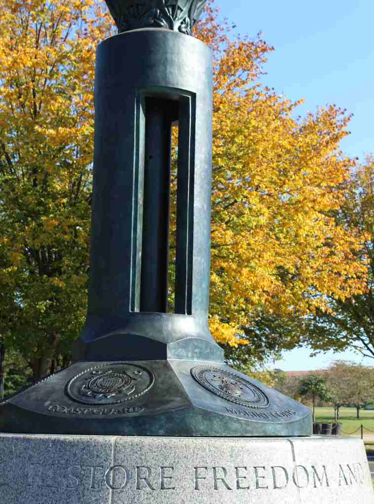 The memorial’s design was chosen in a competition with more than 400 others and was created in 1997 by Austrian-born architect Friedrich St. Florian. It features a large pool and fountains, two pavilions labeled Atlantic and Pacific, 56 pillars for each state and territory, as well as bas-relief sculptures and quotes from historic figures. On the Freedom Wall, each gold star represents one hundred of the 405,399 Americans who died during World War II.