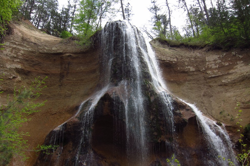 Short hikes lead to Munising Falls and Sable Falls, or boat to falls along the cliffs of Lake Superior.