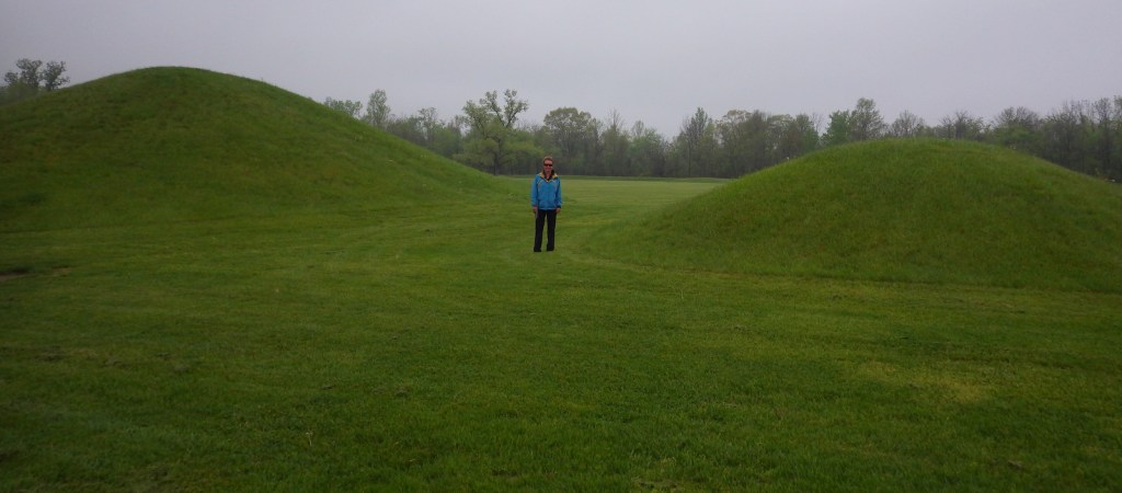 A massive earthen mound and reconstructed earthlodge in Macon, Georgia