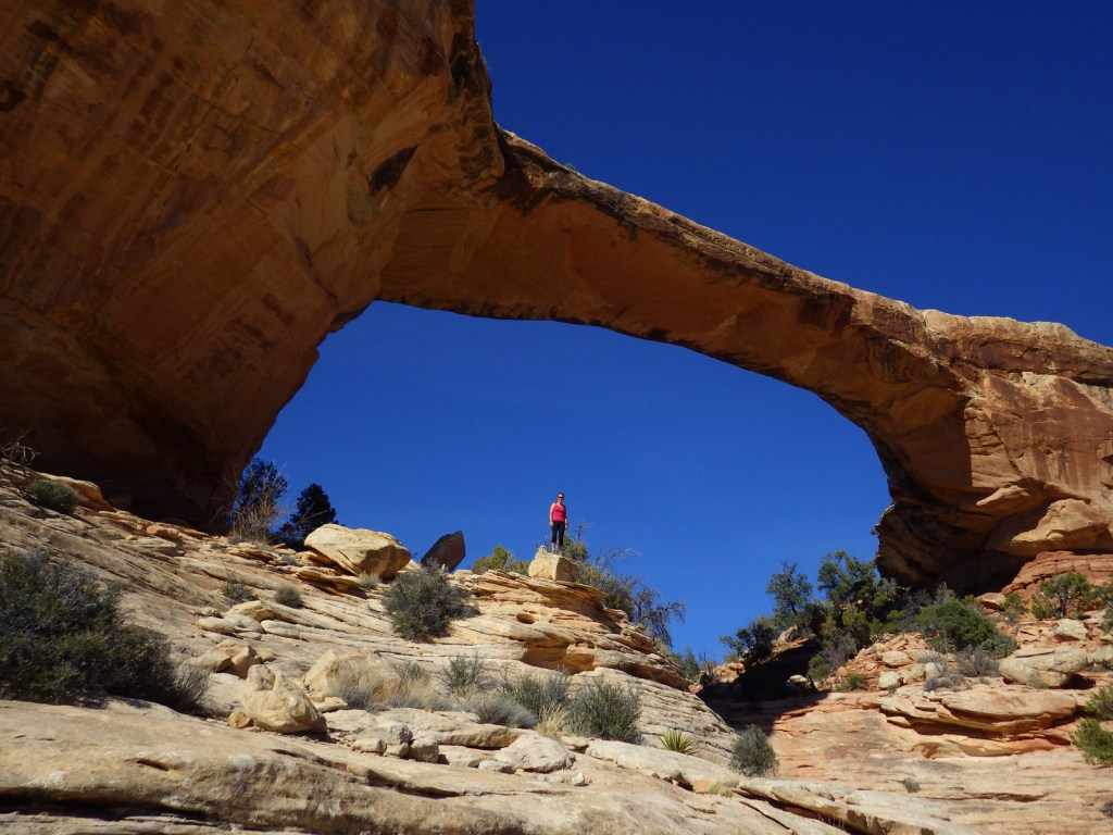 A nine-mile loop hike connects all three natural bridges, also accessible individually by shorter trails