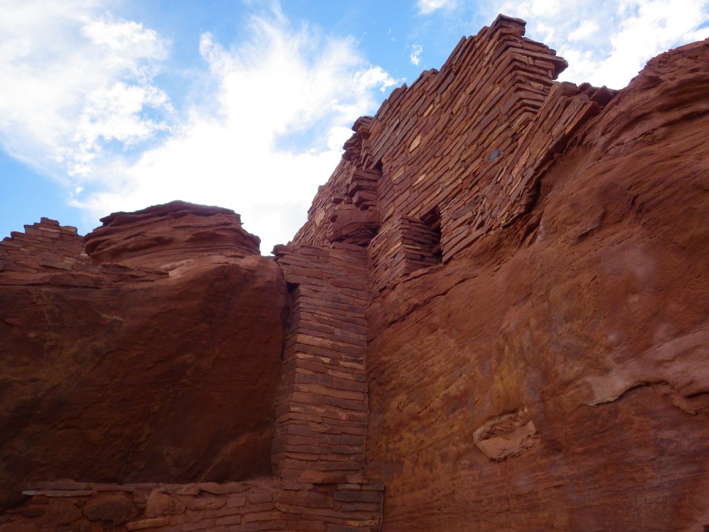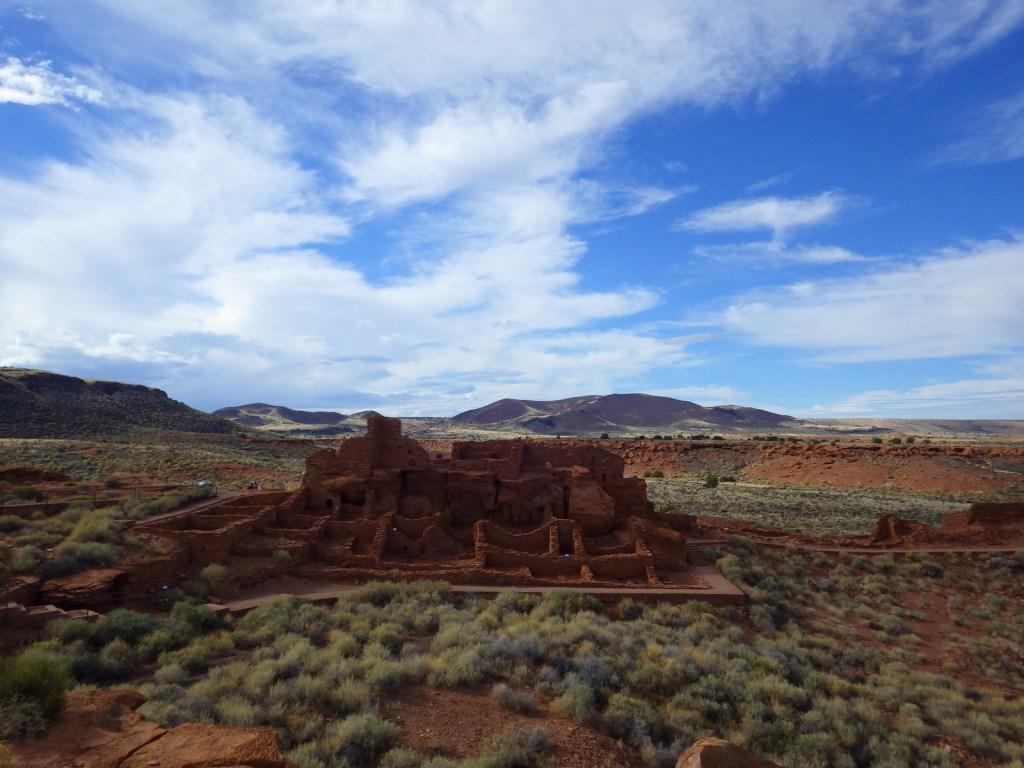 The most famous of the ruins is named Wupatki Pueblo, a three-story, 100-room house inhabited by Sinagua around AD 1100. At the height of its occupation, the structure was three stories tall and contained 100 rooms. Its location near a spring allowed villagers to farm the volcanically-enriched soil, plus the leisure to build an amphitheater and ball court. Here there is more than just crumbling ruins and pottery shards behind glass in a museum; there is a palpable feeling that this was a place where people lived.
