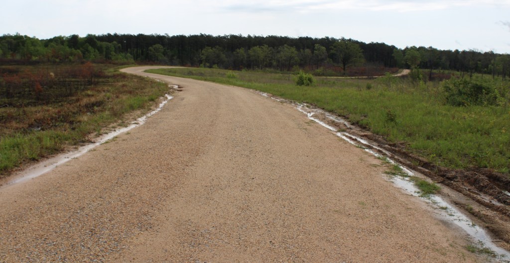 The dirt roads were in good condition in April, even when the trails were flooded and muddy.