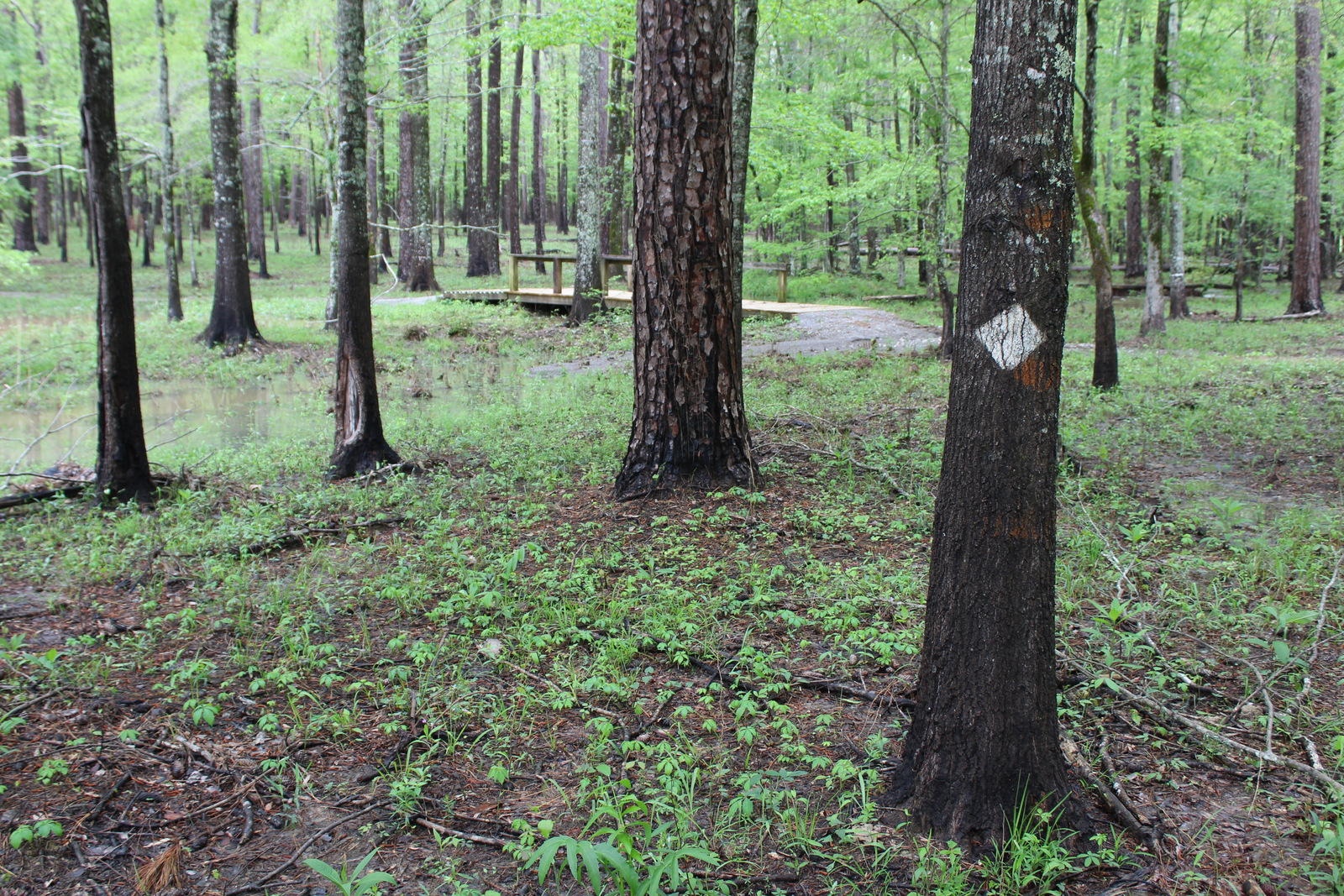 Managed collectively with Mississippi’s five other National Forests, Bienville is centered around the town of Forest, which has numerous rooster statues. The ranger station is located just south of Interstate 20 and has an interpretive trail that passes a pond on a half-mile loop. Just north of the freeway, there is Harrell Prairie Hill National Natural Landmark and 189 acres of old-growth forest protected in Bienville Pines Scenic Area (which we could not locate any signs nor trailheads to access).