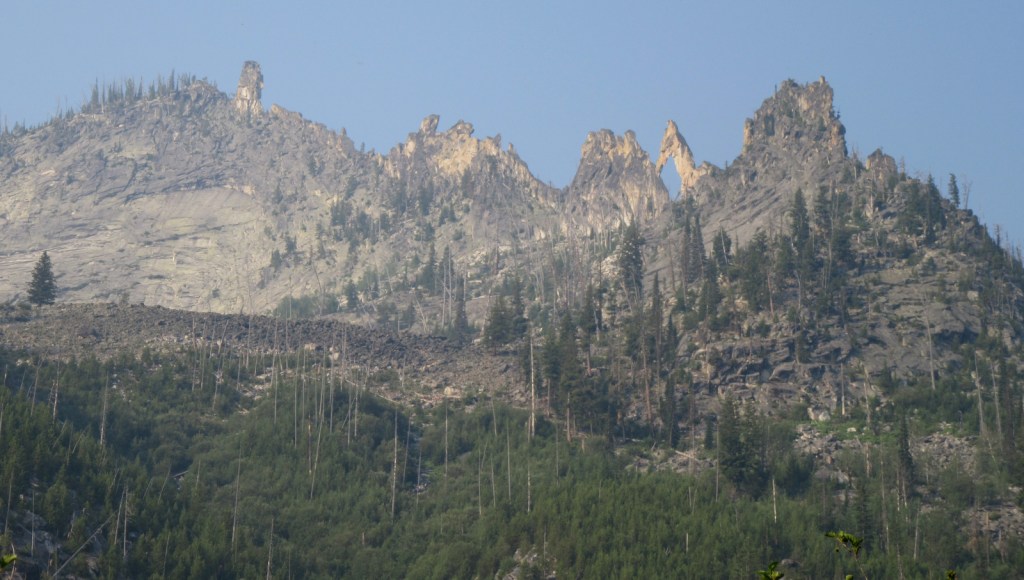 As you hike the Blodgett Creek Trail keep an eye on the ridgeline to the south for a massive natural arch that punches a hole in the skyline.