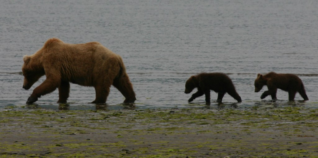 The grizzly/brown bears of Brooks Falls are celebrities due to the annual Fat Bear Week vote for the chunkiest bear on social media.  Less famous are the bears that hang out around Hallo Bay on the coastline, eating grass and shellfish until the salmon arrive.  Regardless of your destination, flights from road-accessible portions of Alaska (like Homer and Kenai) can be quite costly.  Most of the approximately 50,000 annual visitors come only for a day trip, although there are three expensive lodges and a campground in the park.