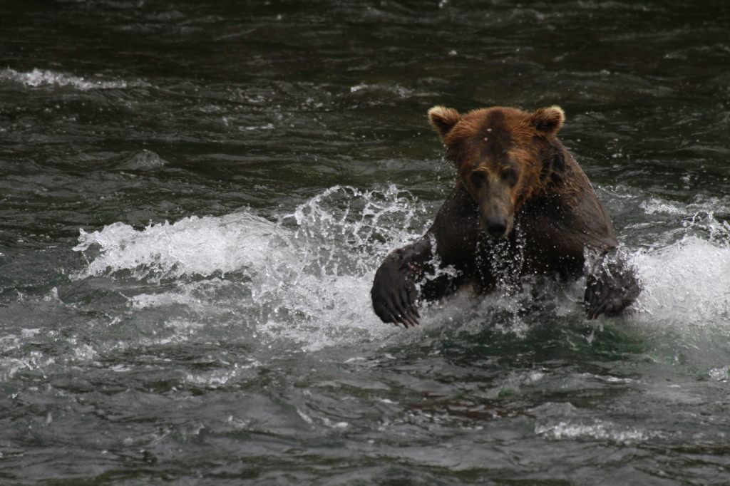 Brooks Falls is a world-class destination for wildlife photographers from around the world, so you might want to bring along a camera with a good zoom lens if you pay to get there during the peak months of July and September. This photo is from Scott’s father (see more of his photos and paintings at Bruce Sink.com)