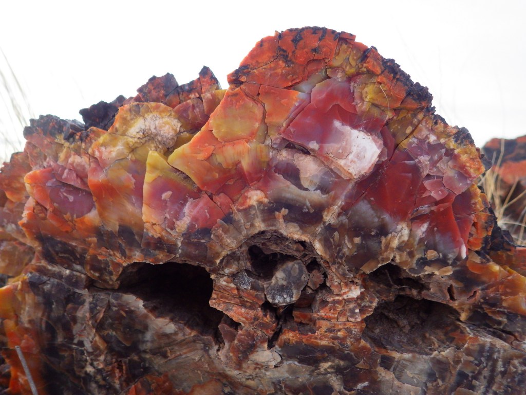 East of Flagstaff, Arizona on Interstate 40 (the historic Route 66) is Petrified Forest National Park, which started as one of the first National Monuments created by President Teddy Roosevelt. It is hard to believe in the dry expanses of the Painted Desert, but 225-million years ago this land existed in a tropical climate where trees grew to 200 feet in height. Some of those trees were buried in mud when they fell and over time silica crystalized in their decaying cells forming colorful rocks. You can still see annual growth rings and rays from the wood preserved on the cross-sections that look like they were cut by a chainsaw. The rocks are protected inside the park, so for a souvenir head to the gift shops around the park’s borders.