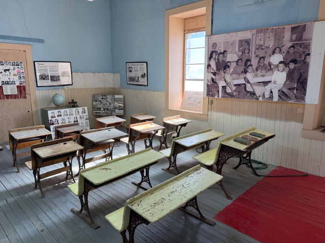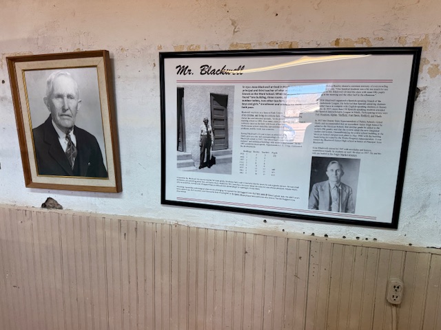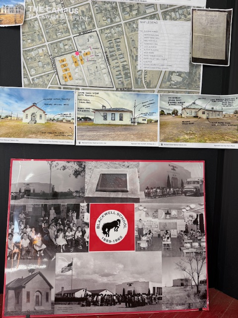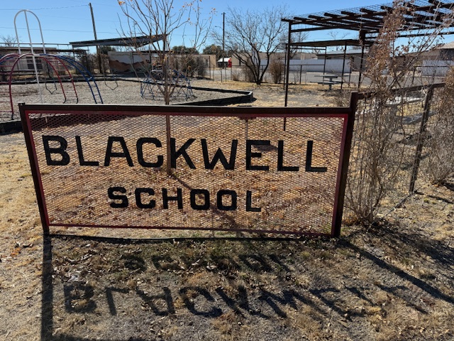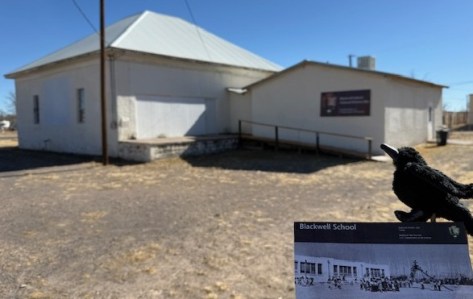 A three-room schoolhouse built for Marfa’s Hispanic children in 1909 is all that remains of a once larger campus (the Band Hall from 1927 is still attached). Blackwell School was named for a prominent early principal, and it closed in 1965 following legally mandated integration more than a decade after the Brown v. Board of Education decision. At its peak, the school had more than 600 students, with Hispanic students segregated, except on sports teams. After 1954, students were no longer allowed to speak Spanish on campus with a mock funeral held for the language and corporal punishment inflicted upon violators. Not all former students wanted to preserve this site where “separate but equal” education was practiced, but enough felt it was important to recall this history. The main building was saved from demolition by the nonprofit Blackwell School Alliance who helped the National Park Service (NPS) acquire the property from the Marfa Independent School District in 2024. The NPS has plans to reconstruct a belltower atop the adobe building.