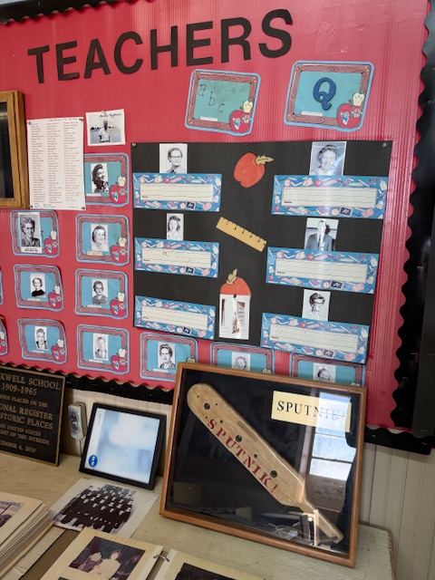 In the lot next to the school building is a playground, and there are plans to install outdoor interpretive signs and photos under the awning to provide information to visitors when the site is closed on weekdays.