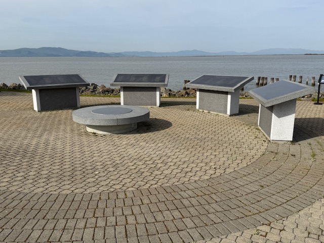 The memorial is located on an active military base called Military Ocean Terminal Concord on Suisun Bay. Therefore, all visitors are required to be U.S. Citizens and must make a reservation at least two weeks before their visit by calling or emailing the National Park Service (NPS) to receive a background check. Tours are given only on Thursdays, Fridays, or Saturdays and meet at John Muir National Historic Site (where you can watch a short film) in Martinez where the group boards government vehicles to drive to the site. After a thorough search of the vehicle and each visitor getting checked off a list, it is a short drive to the memorial where the NPS ranger explains the history of the site at two locations with time to walk around and take photos (but only of the memorial area).