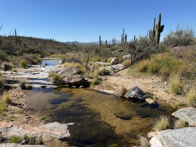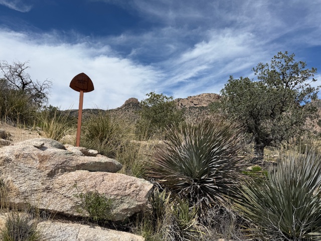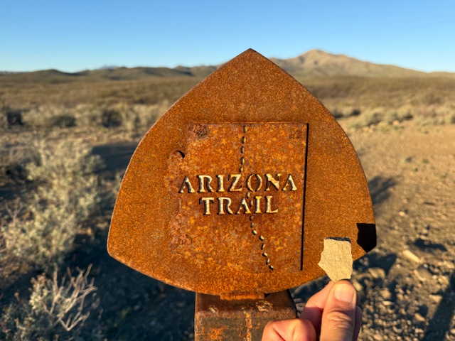 Arizona Trail Day 7, Mile 101 to 126 after my first “zero day” passed under Interstate 10 to the border with Saguaro National Park and saw the first saguaro cacti along the route. I achieved my goal of finding a rock in the shape of Arizona! Enjoyed talking and walking with Ziggy, a Navy veteran. Big thank you to my Mom for meeting up with me in Tucson.