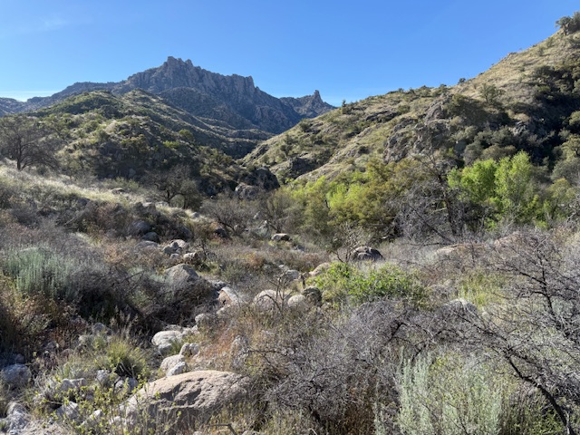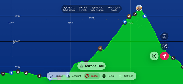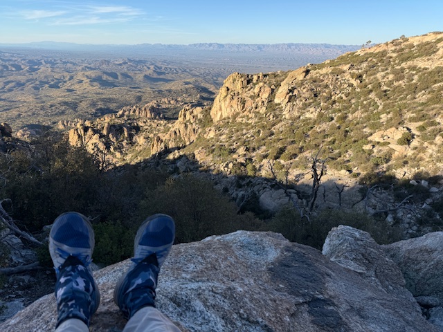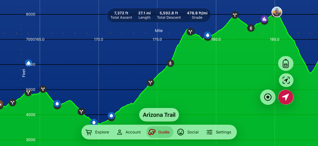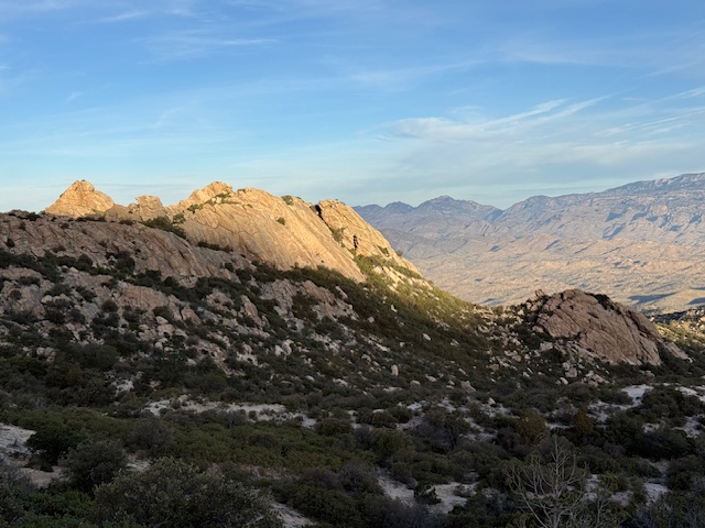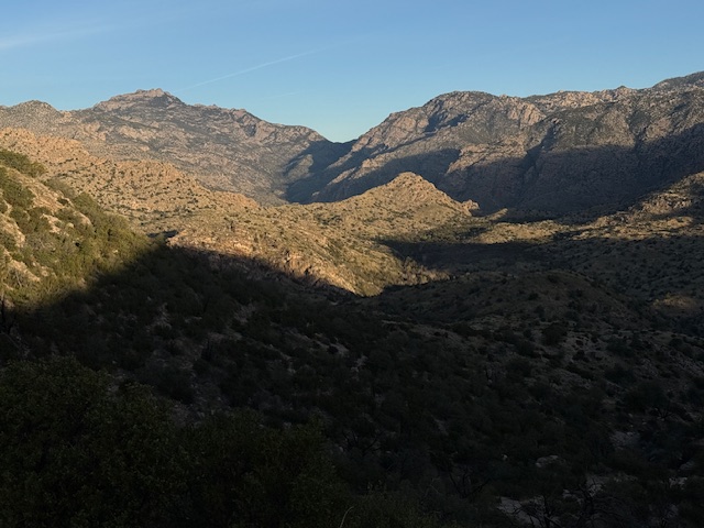 Arizona Trail Day 11, Mile 187 to 215 down the west side of the Santa Catalina Mountains, a cumulative drop of around 8,000 feet. I had two wonderful trail angels meet me in Oracle for lunch. Thanks everyone for your support in this endeavor! Sunrise to sunset was 12:01 so now unofficially past the equinox. Yay!