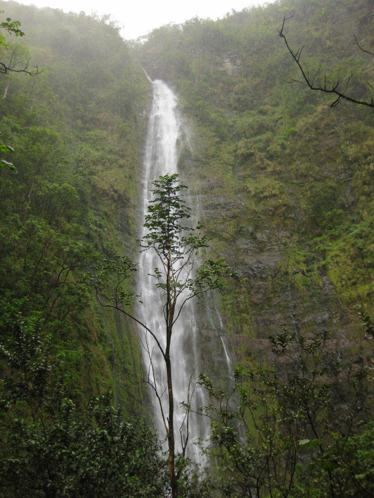 Legend says the misty rainbow at the base of this waterfall is actually the tapa cloth of the goddess Hina, left behind when she hid in a cave behind the falls from the monster lizard Mo‘o before it was slain by her heroic son Maui. Later in her life, Hina escaped to the moon where you can still see her face today.