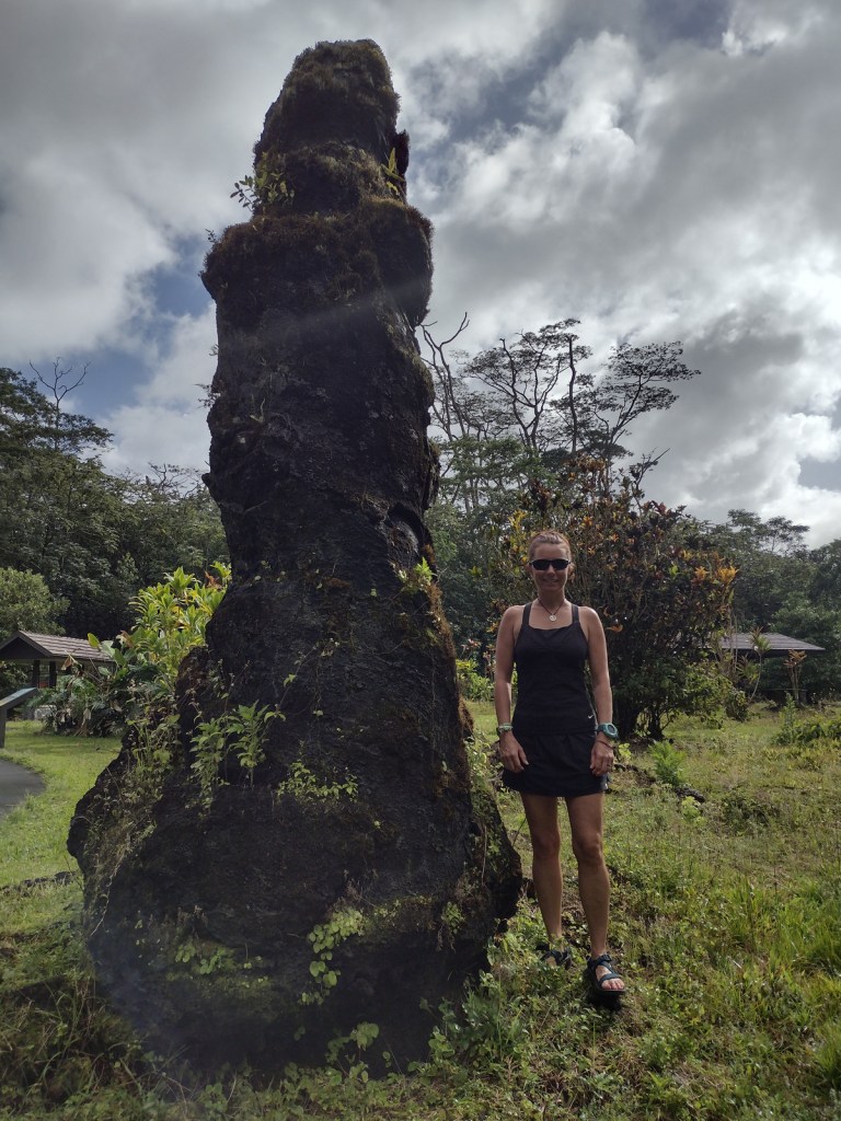 Amid lush greenery, hollow casts of trees were preserved by black lava rock, some over ten-feet-tall with live saplings growing from their crevices. There are also lava tree casts in Hawai‘i Volcanoes National Park.
