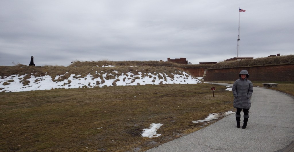 Tiff collecting shells on the beach. It was pretty cold in February, in the low 40s with some serious wind.
