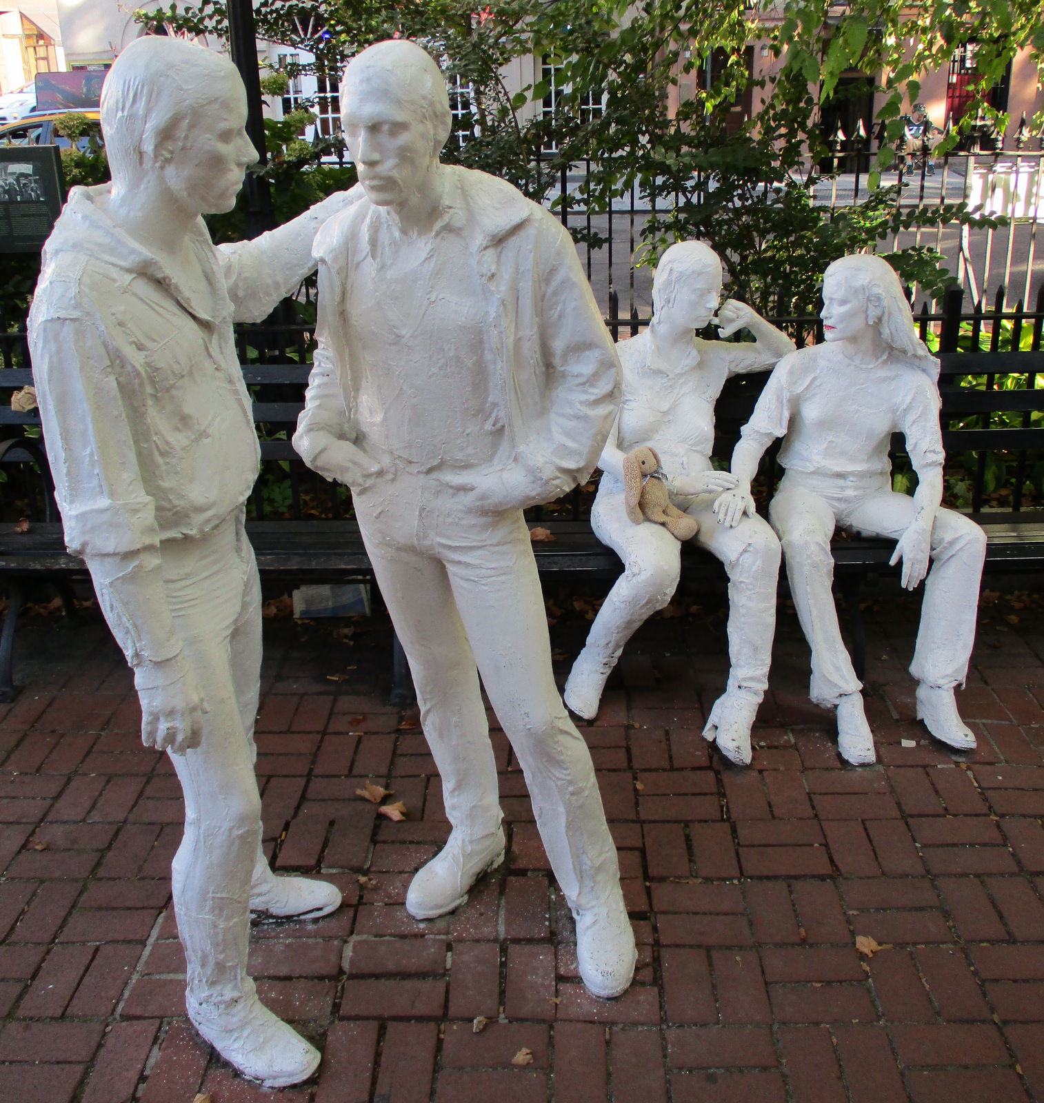 A sculpture by George Segal entitled Gay Liberation Monument was commissioned in 1979, but not installed in Christopher Park until 1992 due to public opposition. It depicts two standing men and two seated women comforting one another in their shared struggle for acceptance.