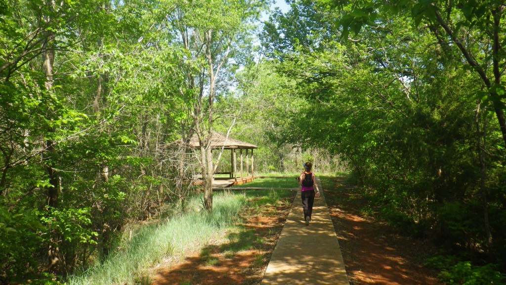 Unlike some other National Grasslands, there are multiple marked and maintained trails here, including two loops totaling 1.6 miles at Croton Creek Watchable Wildlife Area (south of Highway 47) lined by small signs describing native grasses, trees, and birds. A slightly hidden trail is shown on the Forest Service app in the town of Cheyenne where a sidewalk heads into the woods leaving from the parking lot at the high school baseball field. The Cheyenne Nature Walk is paved and has a gazebo and boardwalk crossing a wetland area that was dry during our May visit.