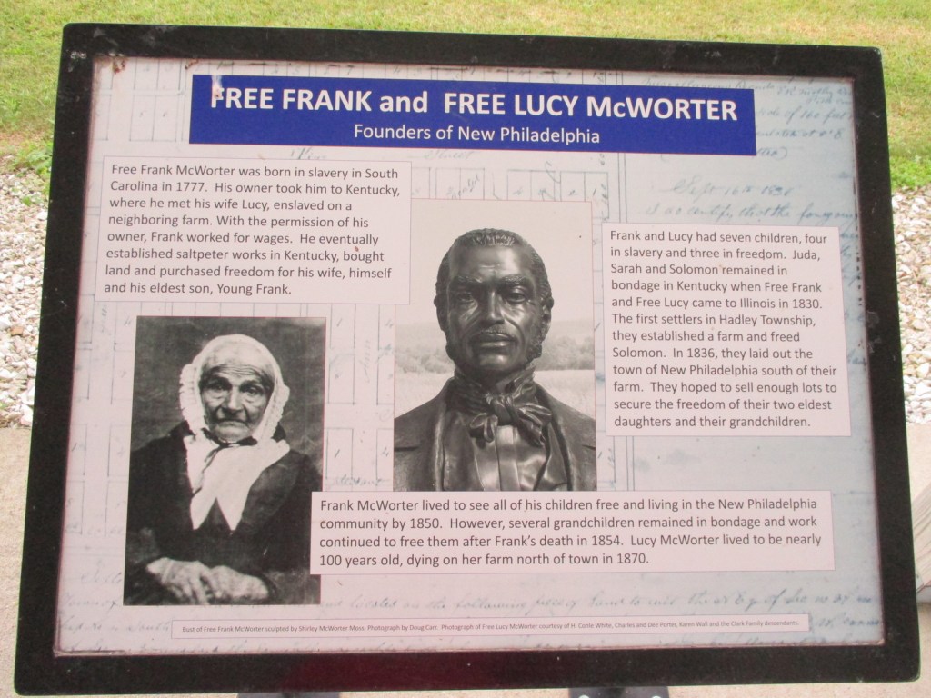 About 77 miles west of Springfield, Illinois, a 42-acre parcel of land became the first U.S. town platted and registered by an African American in 1836. Back then, Illinois had stringent Black Codes that restricted African Americans and required proof they were not slaves. This did not deter “Free” Frank McWorter who was born into slavery in South Carolina and after being moved to Kentucky worked to purchase his pregnant wife’s freedom in 1817, then his own two years later. Once settled in Illinois, McWorter paid $100 for 80 acres and platted a portion of it into 144 lots that he named New Philadelphia. This was a time of racial tension in Illinois, when an abolitionist was killed while trying to protect his printing press in Alton and a violence flared after a petition to abolish slavery was signed in Griggsville only 13 miles east. It is likely that New Philadelphia served as a major stop on the Underground Railroad. The town’s population peaked in 1865 with 160 individuals, 30% of whom were black according to the census. Although the town was abandoned within a century, a major archaeological excavation in 2002 found artifacts including glass bottles, ceramics, children’s toys, possible pieces of the game Mancala, and a 1903 Illinois State Fair badge. The site was added to the National Register of Historic Places in 2005 and became a National Historic Landmark in 2009.