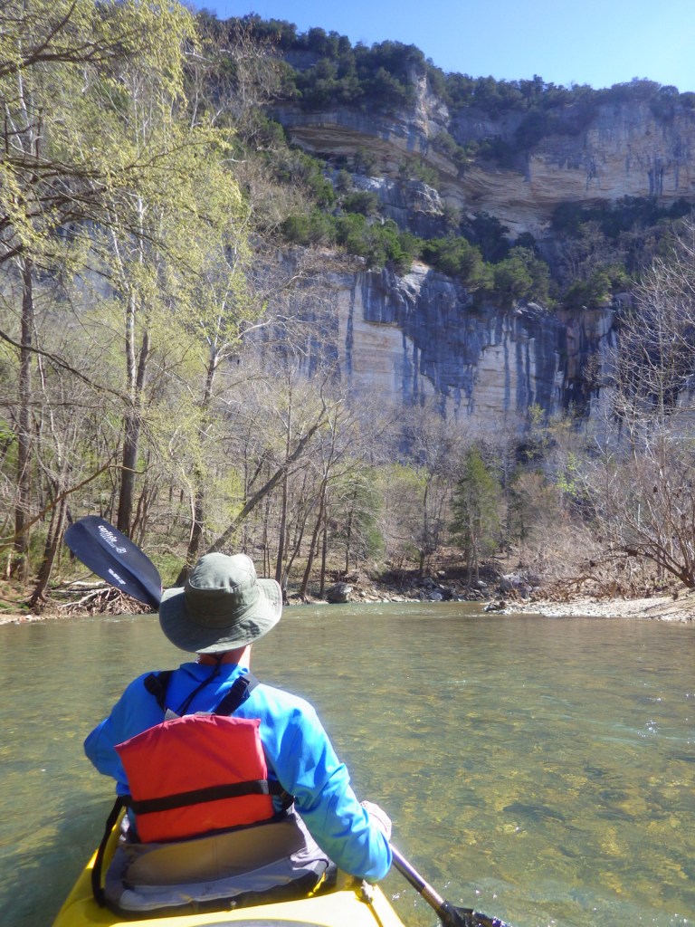 Steel Creek to Pruitt Landing is a 22-mile float through Class I rapids on the Buffalo River through the Ponca Wilderness past rock bluffs up to 500 feet tall. Wildflowers and birds abound in the spring, the only time the upper river is deep enough to float. Numerous outfitters provide rental gear, guides, and car shuttles.
