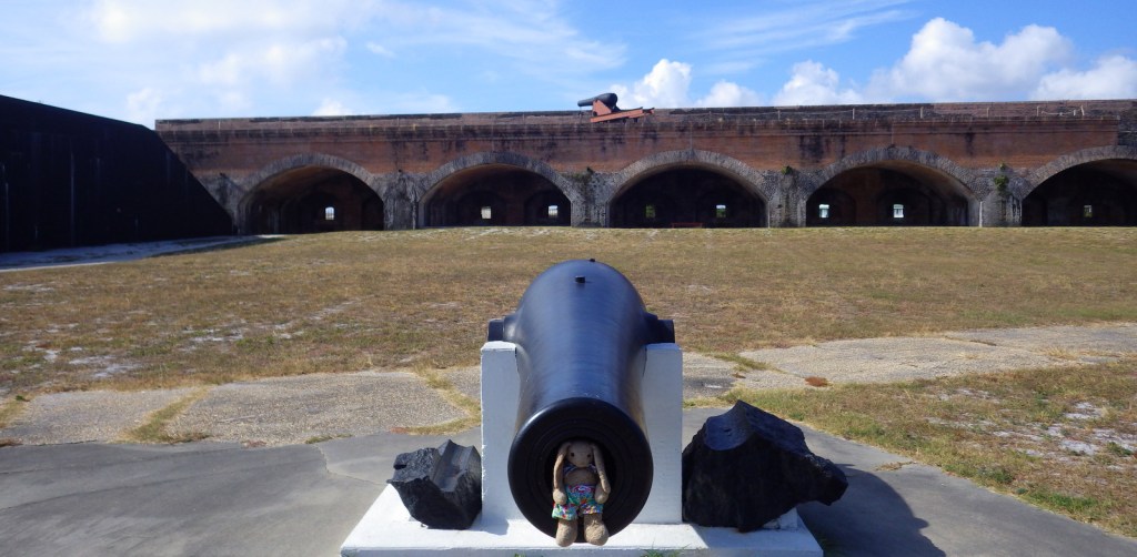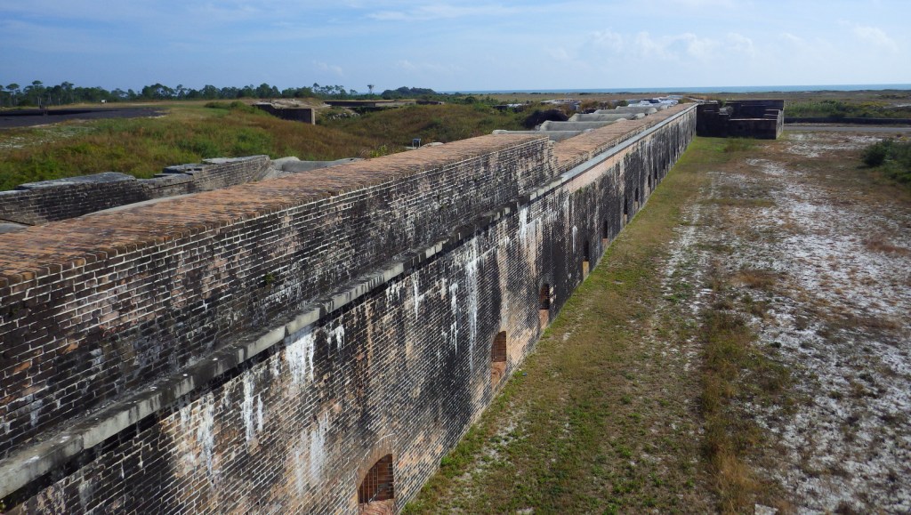 We have tried three times to visit the fort here, but in 2016, 2019, and 2024 the dock was damaged by a hurricane so the National Park Service (NPS) ferry was not running to Rattlesnake Island. Good news is there is an eight-minute film and you can see the small fort from the visitor center. There are also hiking trails, boardwalks, and sandy beaches to explore at the southern tip of Anastasia Island, which are accessible by car. Only 40 miles to the north, the NPS administers Fort Caroline National Memorial as a unit of Timucuan Ecological and Historic Preserve, where you can enter a one-third scale reconstruction of the triangular structure (and no ferries are involved).