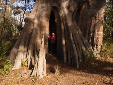 Northwest of Baton Rouge, the largest of all baldcypress trees in the U.S. is found at the end of a flat, half-mile trail, where there is a new boardwalk built around the tree to protect its roots. This area is located down six miles of dirt road full of potholes (and is sometimes flooded).