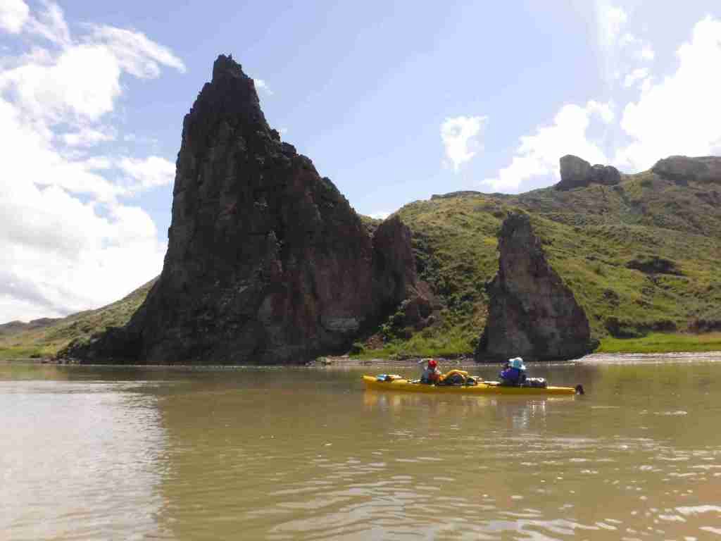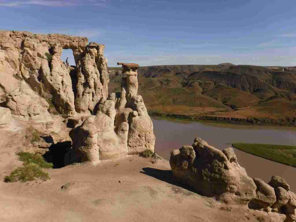 In Fort Benton, start your visit at the free interpretive center run by the Bureau of Land Management (BLM), then head downtown to learn more history by walking the riverfront of Fort Benton National Historic Landmark, including its many museums (admission fees charged) and sculptures of Lewis, Clark, Sacagawea and her son Pompey, and Shep (a local dog famous for his faithfulness). To find out more about the Corps of Discovery, check out the Lewis and Clark Interpretive Center upstream in Great Falls. The most scenic stretch to float lies in the 44 miles between Coal Banks Landing and Judith Landing where there are no rapids and the river current is so strong that paddling is mostly reserved for steering. A permit (fee) is required from the BLM, and we recommend you purchase a Boaters’ Guide and W.A.G. bags. Wildlife we spotted along the river included bighorn sheep, bald eagles, white pelicans, great blue herons, and beavers.