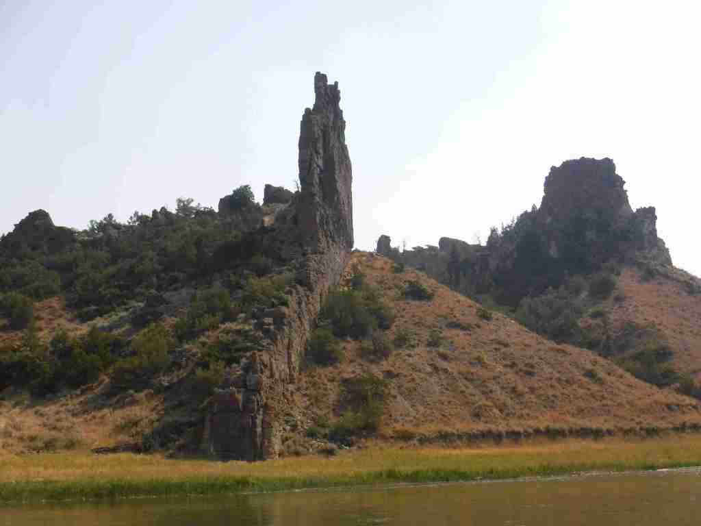 In central Montana, 149 miles of the Upper Missouri River were designated as a National Wild and Scenic River in 1976, upstream from the reservoir in Charles M. Russell National Wildlife Refuge. This stretch of the river still looks much the way it did when the Lewis and Clark expedition first explored it in 1805 and their former campsites are marked by posts. The breaks are a topographic area where the Missouri River eroded sedimentary rock that formed as horizontal layers laid down at the bottom of an ancient sea. The National Monument comprises public land in a matrix with private ranches, with cattle making the water unfit for filtering. There are a couple places to drive to along the river, but the best way to experience it is by floating a canoe or kayak down the non-motorized sections