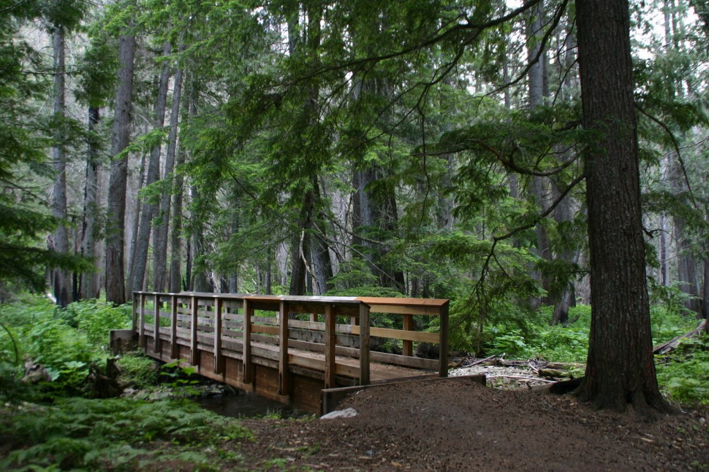 In 1959, Ross Creek Cedar Grove Scenic Area preserved 101 acres of western redcedar trees up to eight feet in diameter. A one-lane paved road with pullouts leads 4.3 miles from Highway 56 to a large parking area with a day-use fee. The main trail is a less than one-mile loop with interpretive signs, but continues five miles to the North Fork of Ross Creek. The old-growth forest is also home to large Douglas-fir, Engelmann spruce, grand fir, and western hemlock trees growing above a lush green understory of ferns and Devil’s-club.