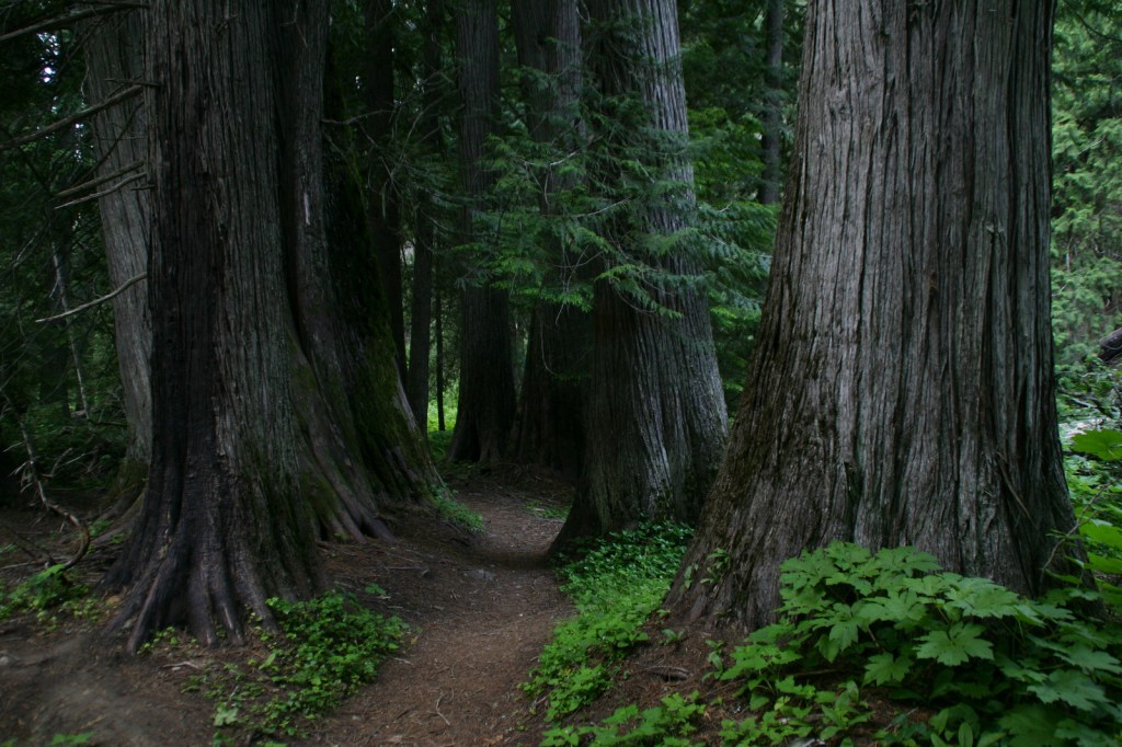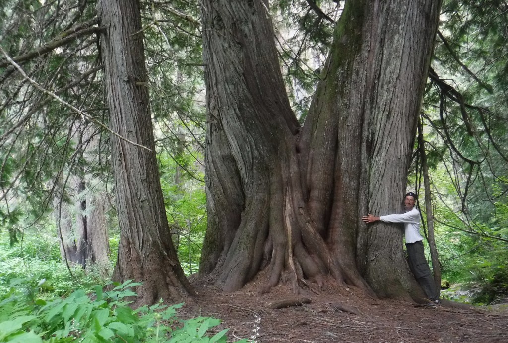 There are some impressive western redcedar trees growing in the Settler’s Grove of Ancient Cedars.