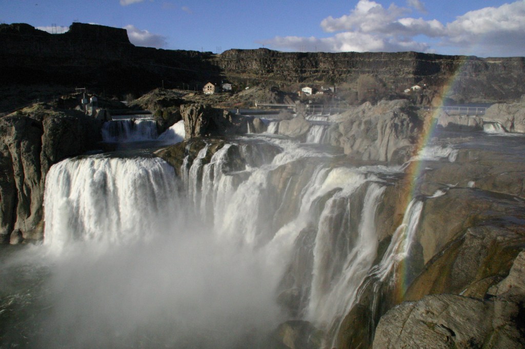 Twin Falls is home to this impressive cascade that drops 212 feet down the Snake River canyon. Its mist can form a brilliant rainbow, especially when the river is flowing strong in the spring before much of its water is diverted for agriculture.
