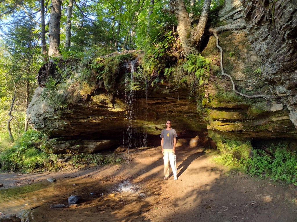 Several lighthouses are located along the shores of the Great Lakes, including the picturesque Round Island Lighthouse near touristy Mackinac Island, Point Iroquois Light Station (see Instagram-worthy Photo) on the Whitefish Bay Scenic Byway, and one on private land near Wick Point within Grand Island National Recreation Area (see our blog post). Further to the west Highway M-28 follows the shores of Lake Superior, where a Wayside Park at the east side of AuTrain Bay provides parking for those wishing to carefully cross the road to see ten-foot-tall Scott Falls.