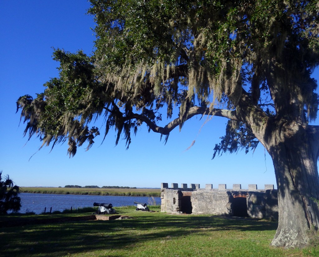 The British established Fort Frederica in the 1730s to stop Spanish encroachment from Florida into their American colonies. The town that formed around the fort peaked at a population of 1,000. Today it is a beautiful setting with tabby wall ruins and Spanish moss-draped trees.