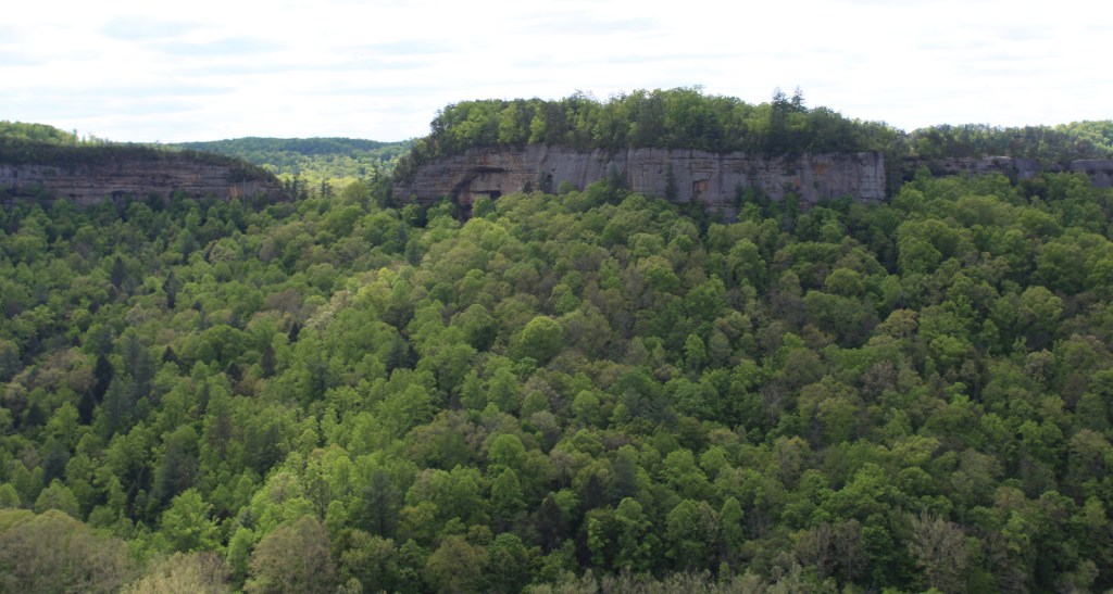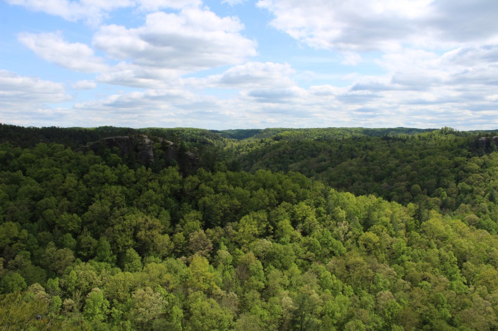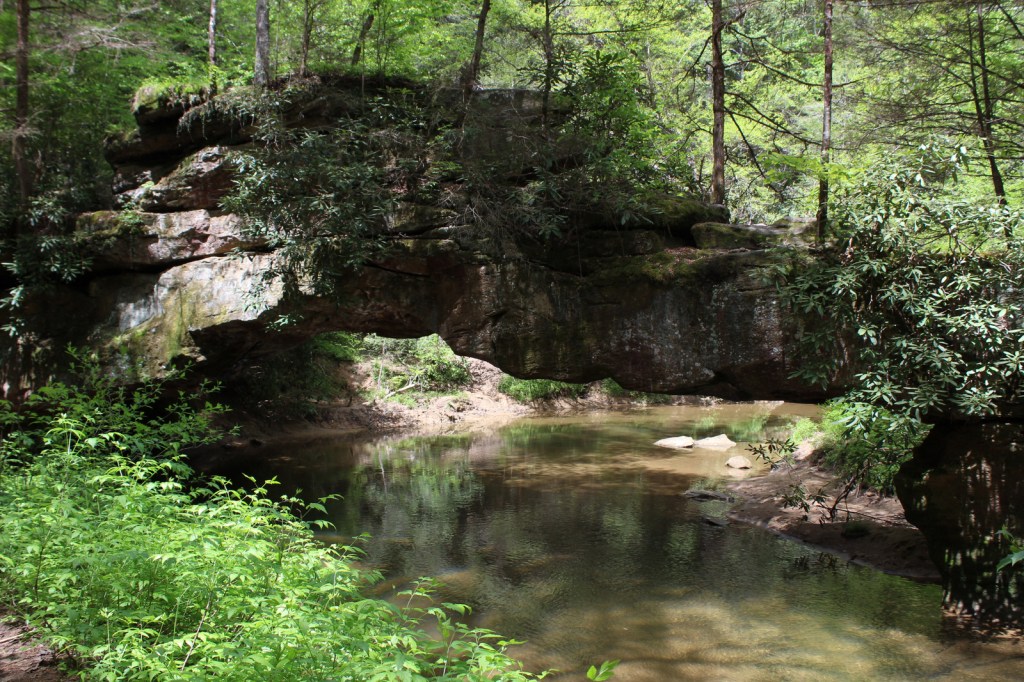 South of Interstate 64, Cave Run Lake stretches across 8,270 acres in northeastern Kentucky where we spent the night at a Forest Service campground on a cross-country roadtrip in 2007. There are campgrounds in Red River Gorge Geological Area, where backpacking in the Clifty Wilderness only costs $5 per day per car for a permit.