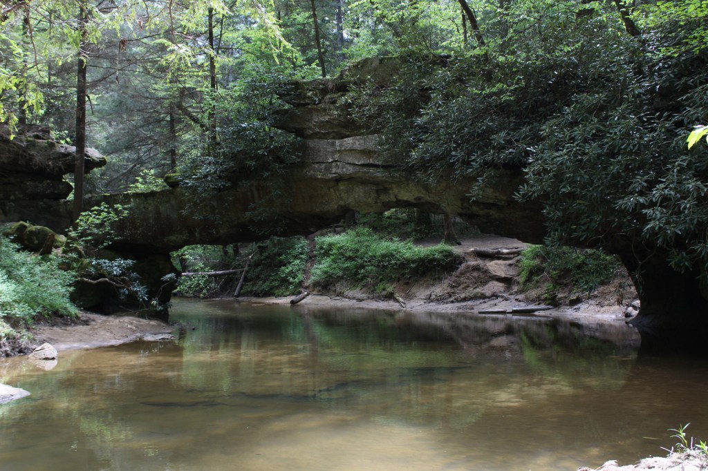 In the rolling hills of the Cumberland Plateau, Red River Gorge Geological Area is full of enough sandstone arches to keep you busy exploring for days. Although 91-foot long Koger Arch was closed during our visit, we enjoyed short hikes to 75-foot Sky Bridge and 32-foot Princess Arch. Rock Bridge Trail is a 1.3-mile loop that passes the sole natural bridge in the area with water flowing through it, and the only one formed by a waterfall cutting through the sandstone.