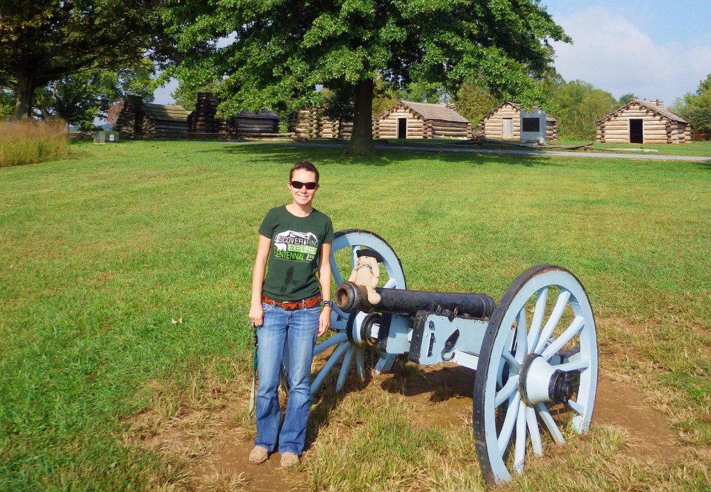 Tiff and Wondon with a British cannon at the Great Redoubt.