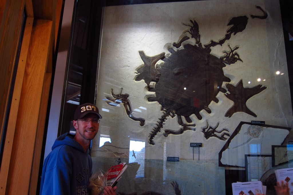 Even 50-million years ago it was windy in Wyoming! The excellent preservation of the fossils may be in part due to high winds that kept surface water well-oxygenated while deeper waters were stagnant. If you need to get out of the wind, head into the visitor center to see fossil fish, turtles, and other species on display. On the deck outside there is an awesome timeline that traces CO2 levels and life on Earth throughout geologic time.