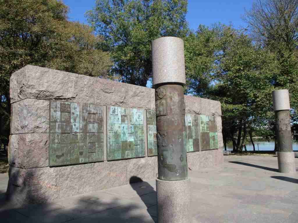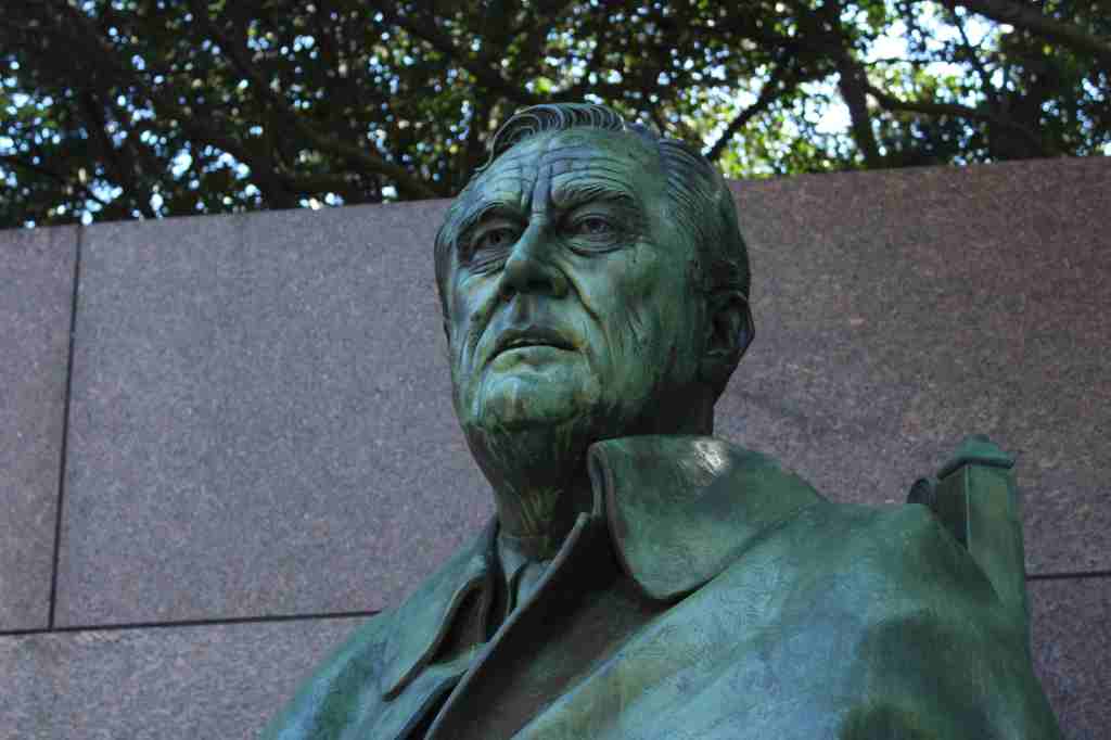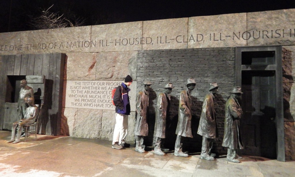 1930s breadline statue by George Segal, FDR in a wheelchair statue