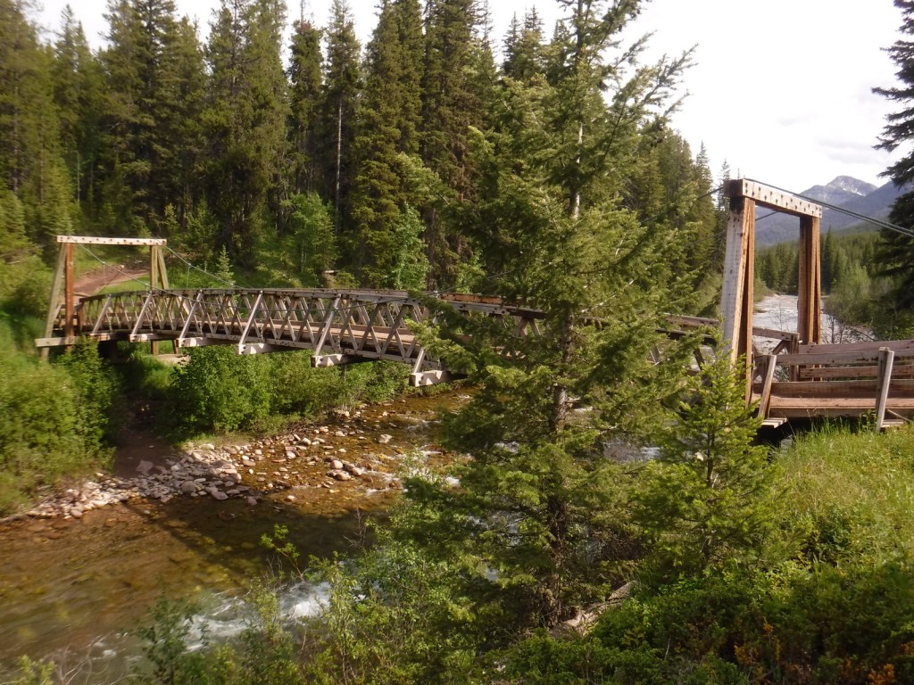 One of the most famous formations along the Continental Divide National Scenic Trail is the 15-mile long Chinese Wall, a 1,000-foot-tall cliff composed of five-million-year-old limestone. Its closest access is 15 miles one-way from the South Fork Sun Trailhead, which is often marked as Packers on maps at the end of the gravel Benchmark Road (Forest Road 235). The trail begins by following the South Fork Sun River before crossing a bridge and entering the Bob Marshall Wilderness. We got a late start on the way in and came across a grizzly/brown bear grazing near the trail that evening and, on the drive out, we stopped to photograph three moose near Wood Lake Campground and a common loon in Anderson Lake.