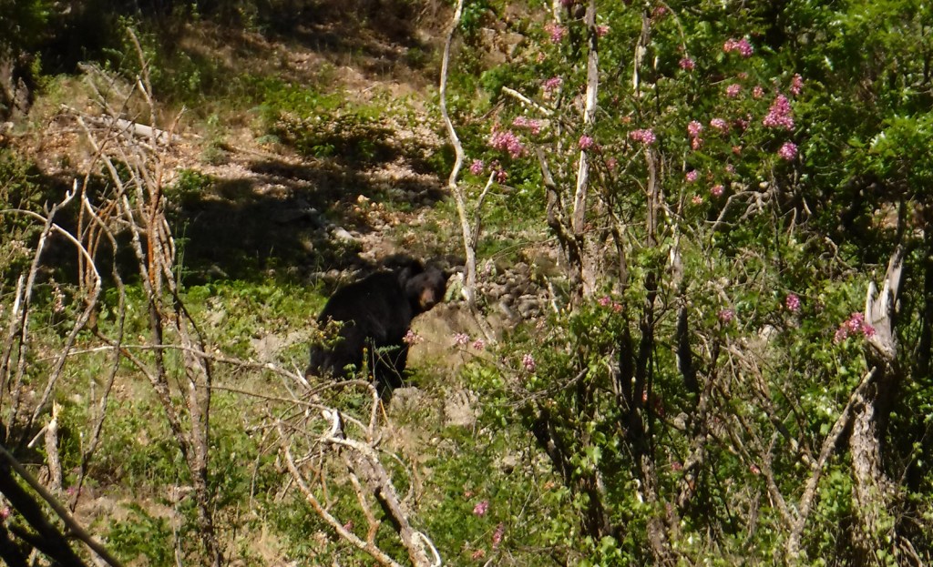The Gila River gives its name to this National Forest, as well as animals like the venomous Gila monster, Gila woodpecker, and fish, including a trout, topminnow, and several species of chub. Mexican wolves have been reintroduced to this region, and other predators like mountain lions, bobcats, and black bears (we saw one and followed another’s wet footprints while backpacking near Gila Cliff Dwellings National Monument). Unique mammals include the javelina (collared peccary), gray fox, white-nosed coatimundi, and Coues white-tailed deer. Mule deer, elk, pronghorns, and bighorn sheep are additional ungulates found in Gila National Forest. Large birds include roadrunners, Mexican spotted owls, bald eagles, ospreys, peregrine falcons, and wild turkeys. Most of our wildlife encounters were with reptiles like horned lizards (a.k.a. frogs or toads), western fence lizards, and rattlesnakes.