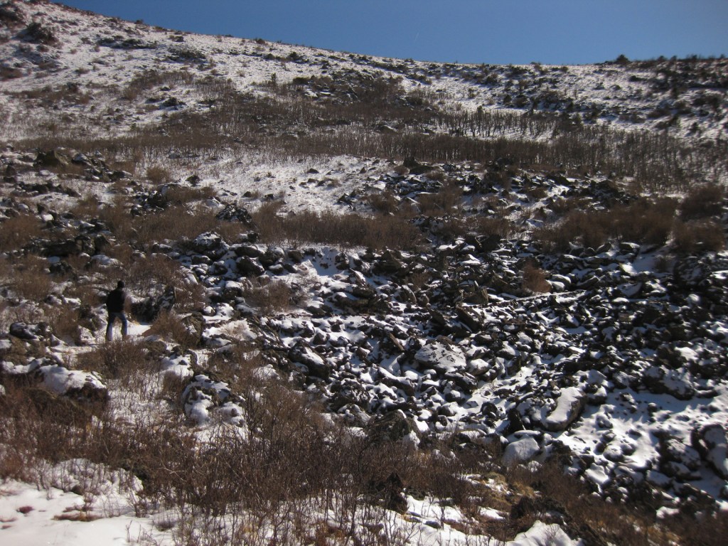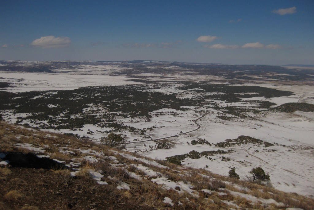 The crater of the cinder cone is about 415 feet below the rim, which offers views into Colorado, Texas, and Oklahoma on a clear day.