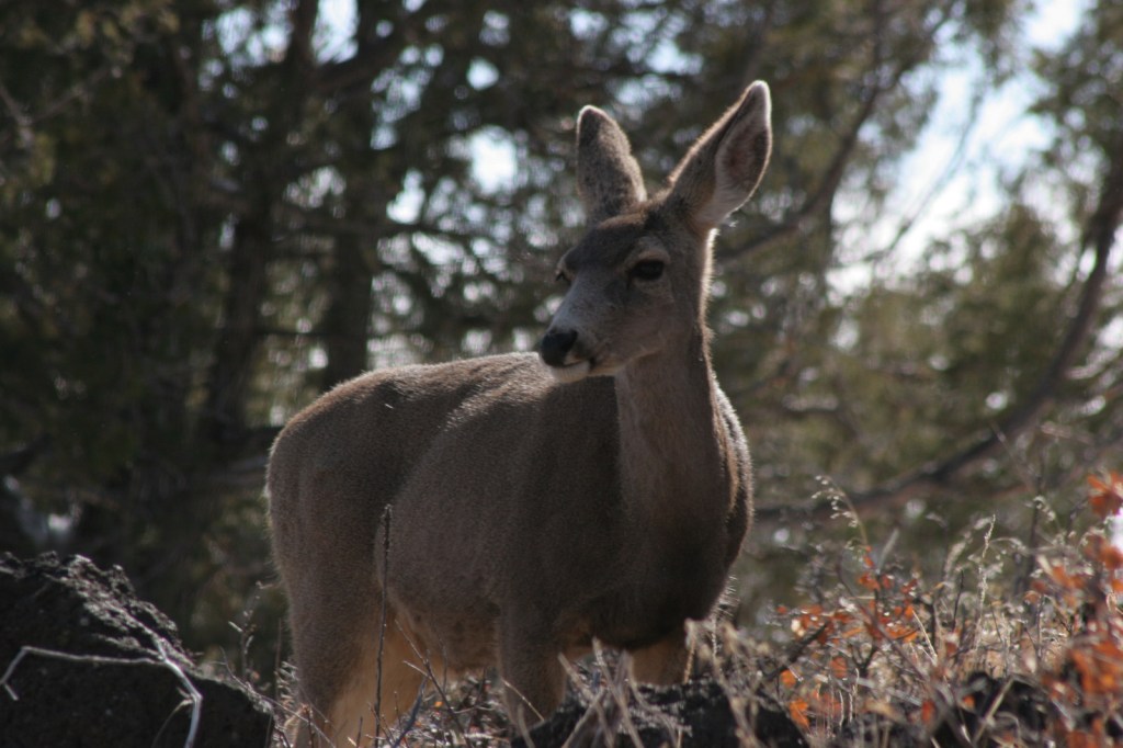 There are two trails at the top of the cinder cone, one that drops to the bottom of the crater in 0.2 miles and another that circles the rim for one mile (going counterclockwise is recommended as less strenuous). There is also the one-mile Lava Flow Trail loop and a short paved Nature Walk at the visitor center, as well as the Boca Trail that loops 1.7 miles along the western base of Capulin Volcano where you might see mule deer.