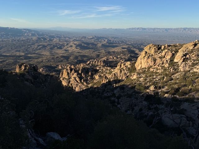 Box Camp Trail is special to us as it was the site of our first date, marriage proposal, and wedding ceremony. Over the course of 13 miles, Box Camp Trail drops 5,000 feet in elevation from ponderosa pine forest through pinyon-juniper woodland to the desert of Sabino Canyon dominated by saguaro cacti. The rugged trail disappears in places, but offers incredible views along the way. Route finding is required as the trail is somewhat overgrown (with downed trees from wildfires), plus the one-way hike requires two cars, one left at Sabino Canyon Recreation Area and one at the trailhead on the Catalina Highway.