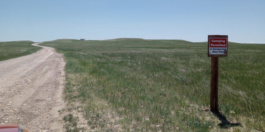 Unlike most National Grasslands, this one has a developed campground at French Creek (fee required) with vault toilets, fire grates, and picnic tables, but no potable water.  It is free to camp in designated sites along the busy Nomad Vw S Road just north of the Pinnacles Entrance to Badlands National Park.