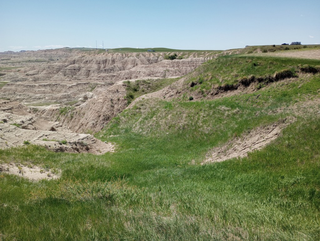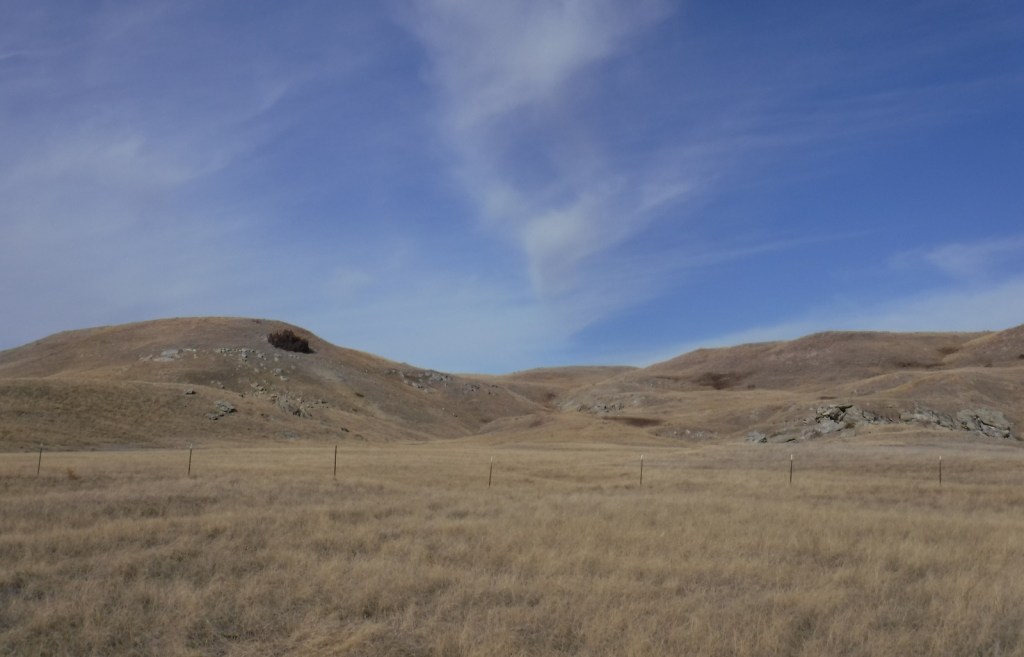 Right to the southeast of the Wyoming border on Highway 18 is a section of Buffalo Gap National Grassland where we did some off-trail hiking along a waterway.  Conata Basin south of Badlands National Park is also a good option for prairie exploration.